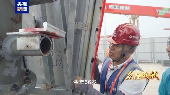 建筑工人管张伟,阅兵今年56岁,当天这已经是上自他第三次参加北京天安门广场重大活动的装置搭建任务。